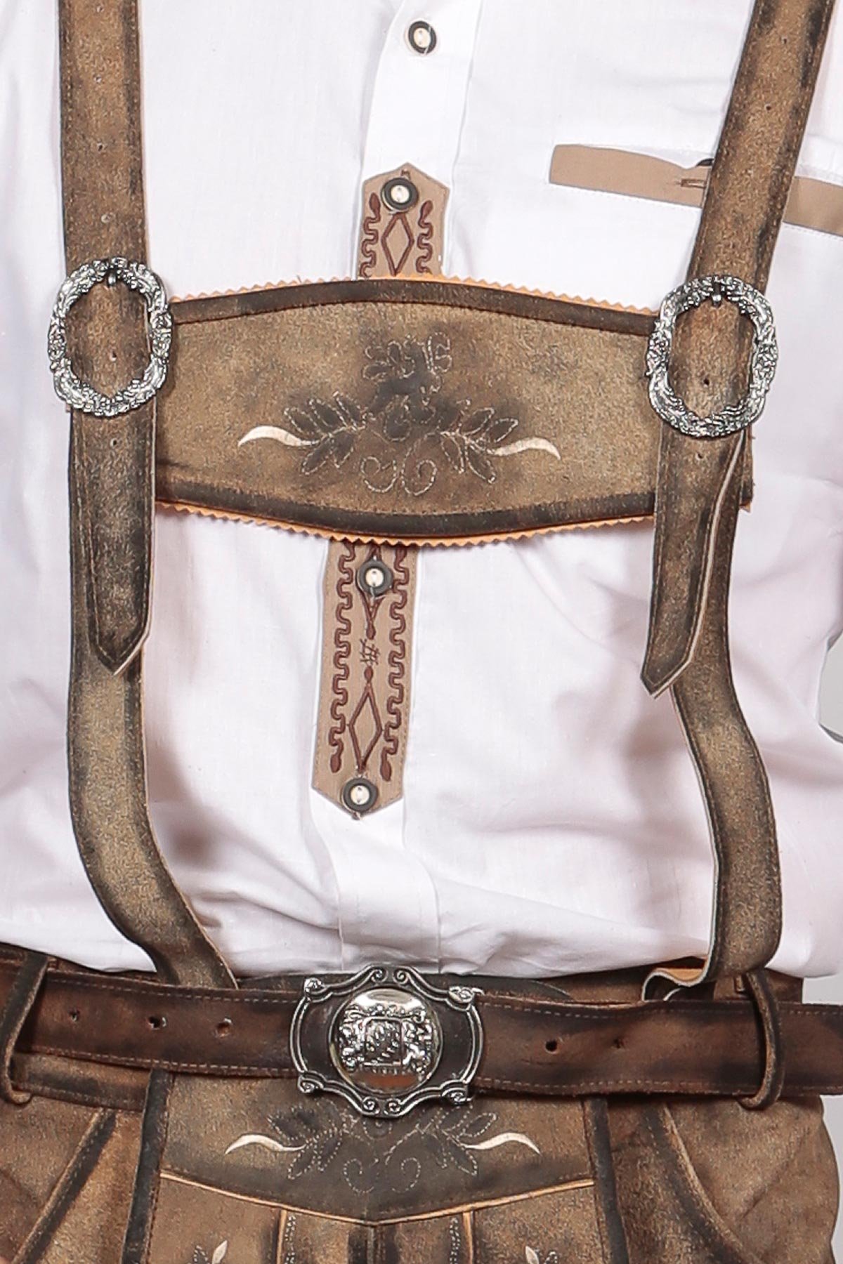 This bundhosen outfit can be completed with a checkered or embroidered shirt. You can also add a pair of Haferlschuhe Lederhosen shoes from our unlimited assortment featuring delicate embroidery, and side laces. Don’t forget our classic Oktoberfest vests and lederhosen waistcoats to complete your perfect outfits!