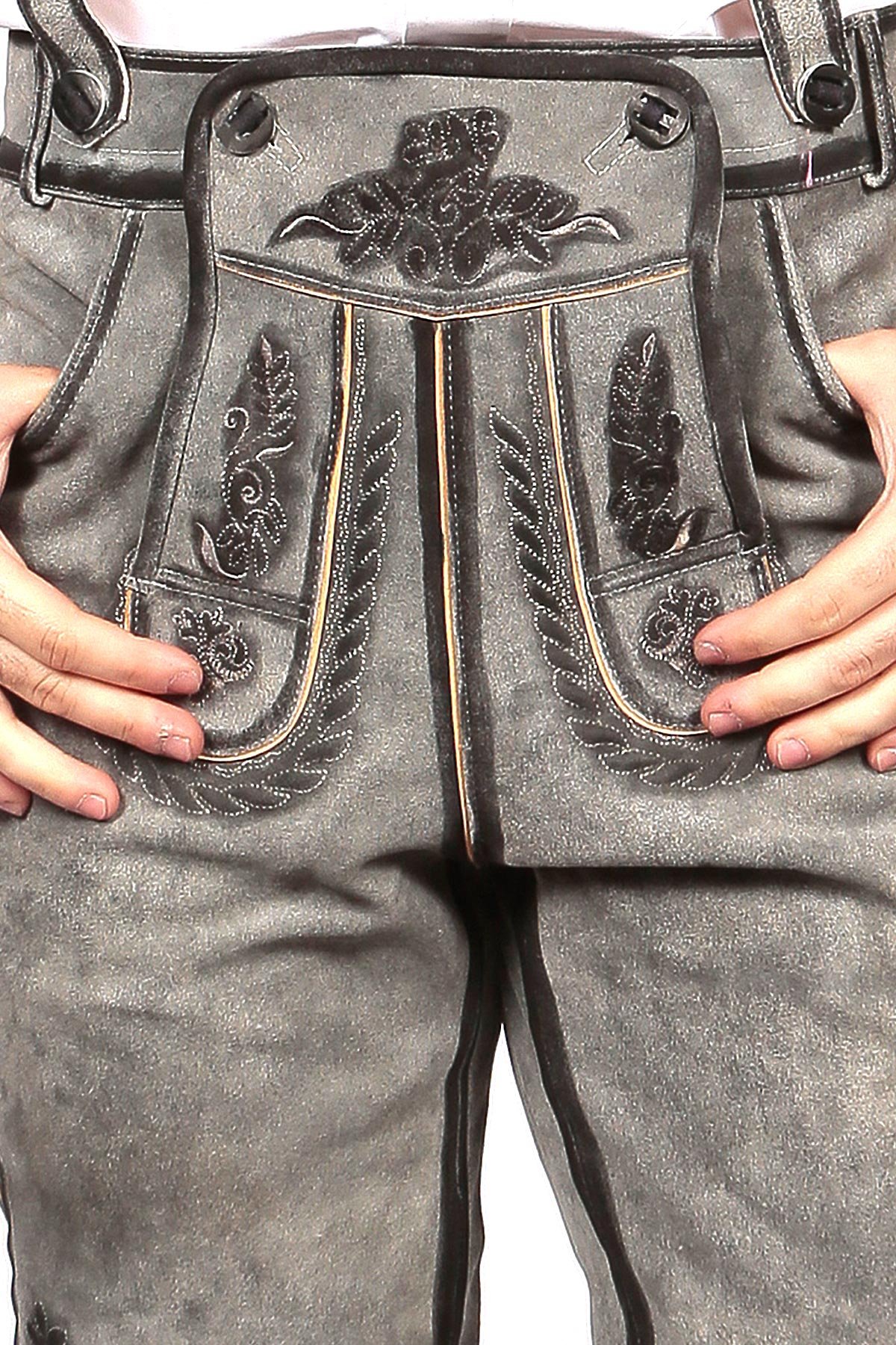 This bundhosen outfit can be completed with a checkered or embroidered shirt. You can also add a pair of Haferlschuhe Lederhosen shoes from our unlimited assortment featuring delicate embroidery, and side laces. Don’t forget our classic Oktoberfest vests and lederhosen waistcoats to complete your perfect outfits!