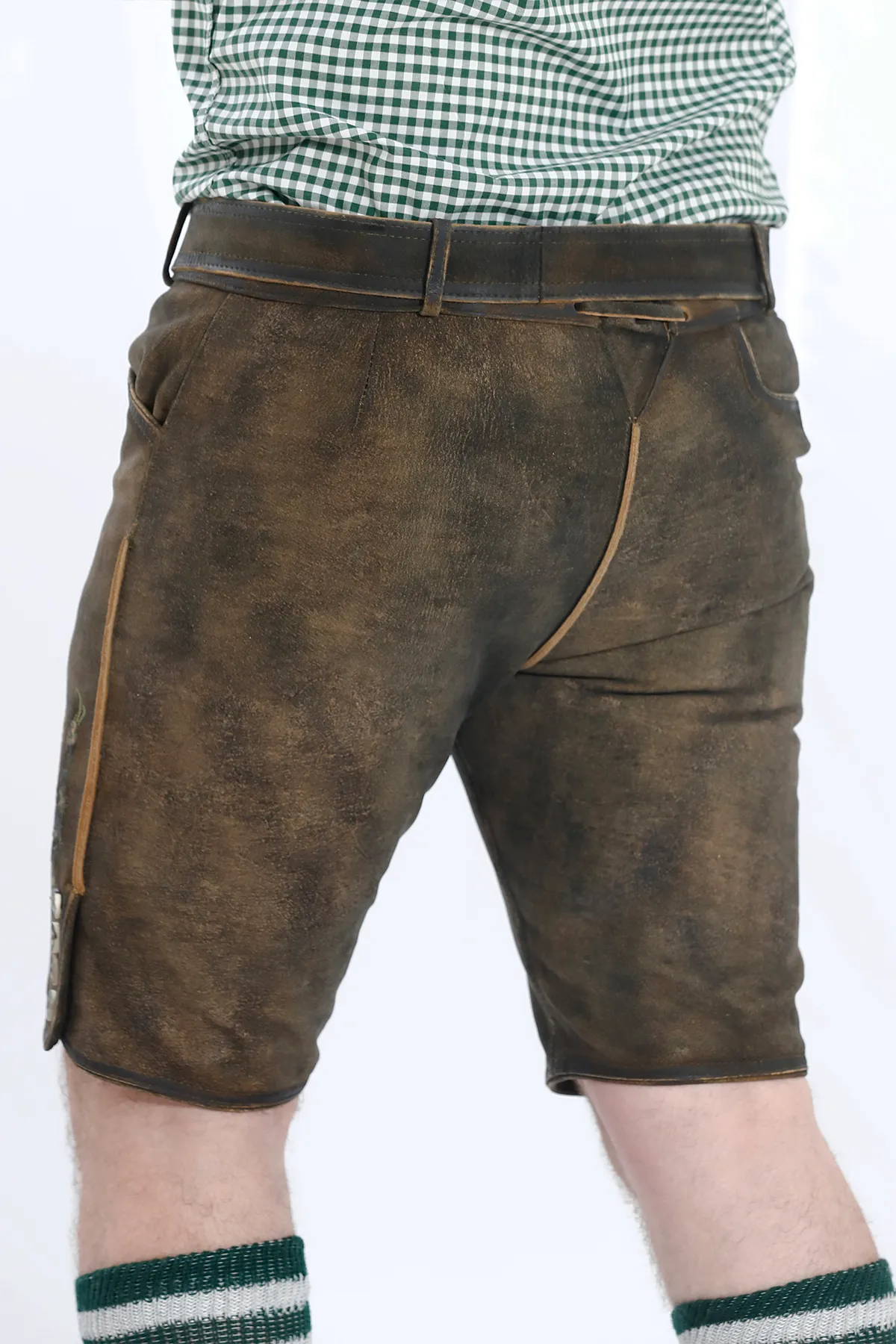 You can tell the quality of the lederhosen just by the way they’re stitched and shaped.