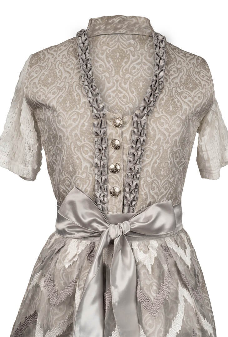 This midi dress has a length that almost covers the knee and would go great with a set of Oktoberfest shoes. Buy this dress with a free Satin grey apron that matches the details on the Dirndl dress
