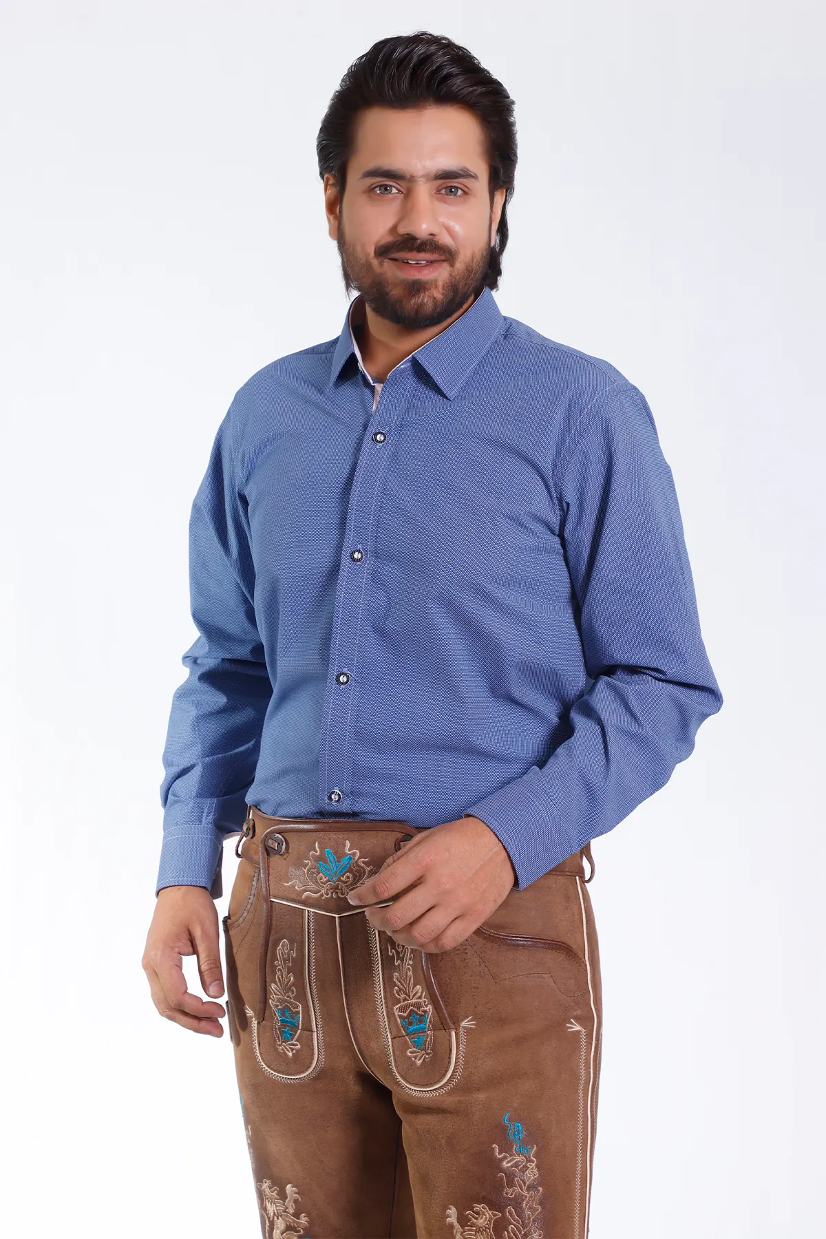 Details : The shirt’s Blue color offers a clean and timeless look that complements any Lederhosen. Stylish cuffs that can be worn buttoned or rolled up for a versatile look.