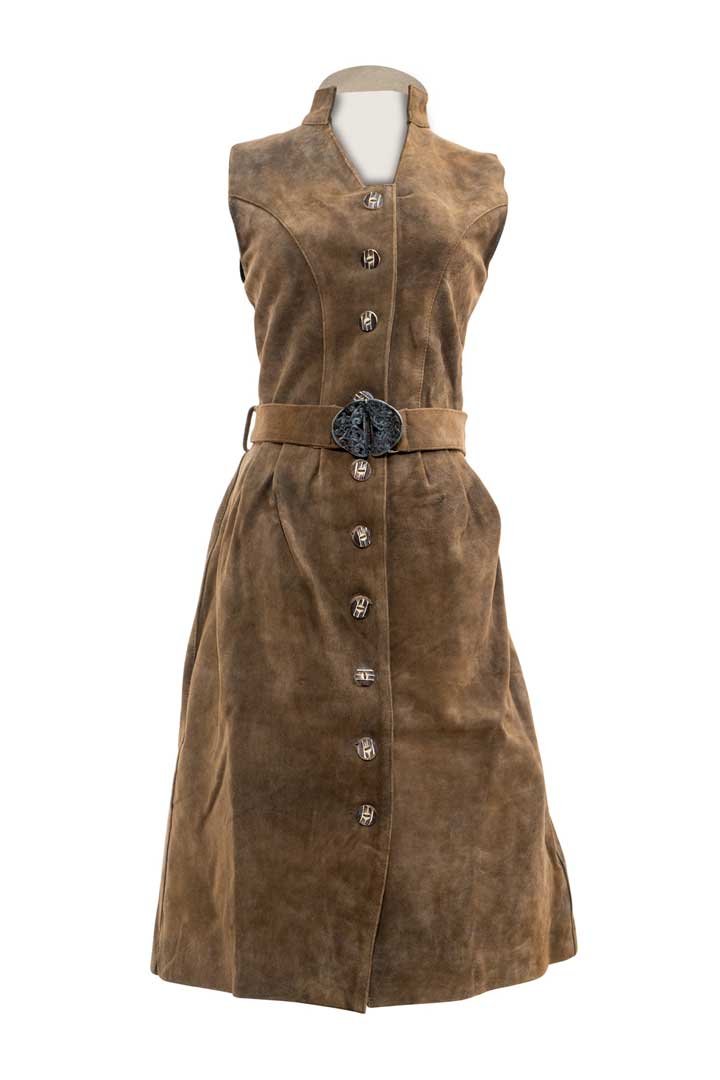 Material : Authentic Tracht Leather Dress with a leather belt and metal buckle.