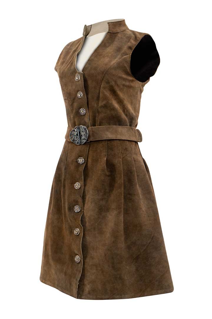 Detail : Tracht Leather dress includes a vivid leather belt embellished with an intricate two-part metal buckle.