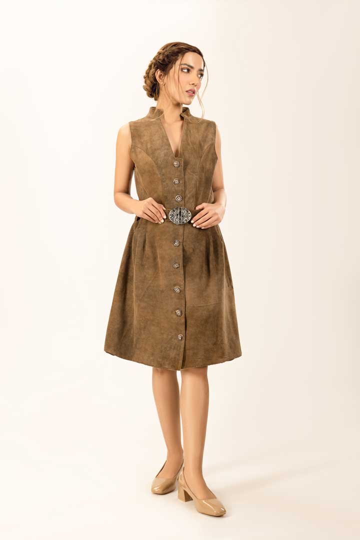 Modern Tracht Leather Dress Elisa Forest Brown