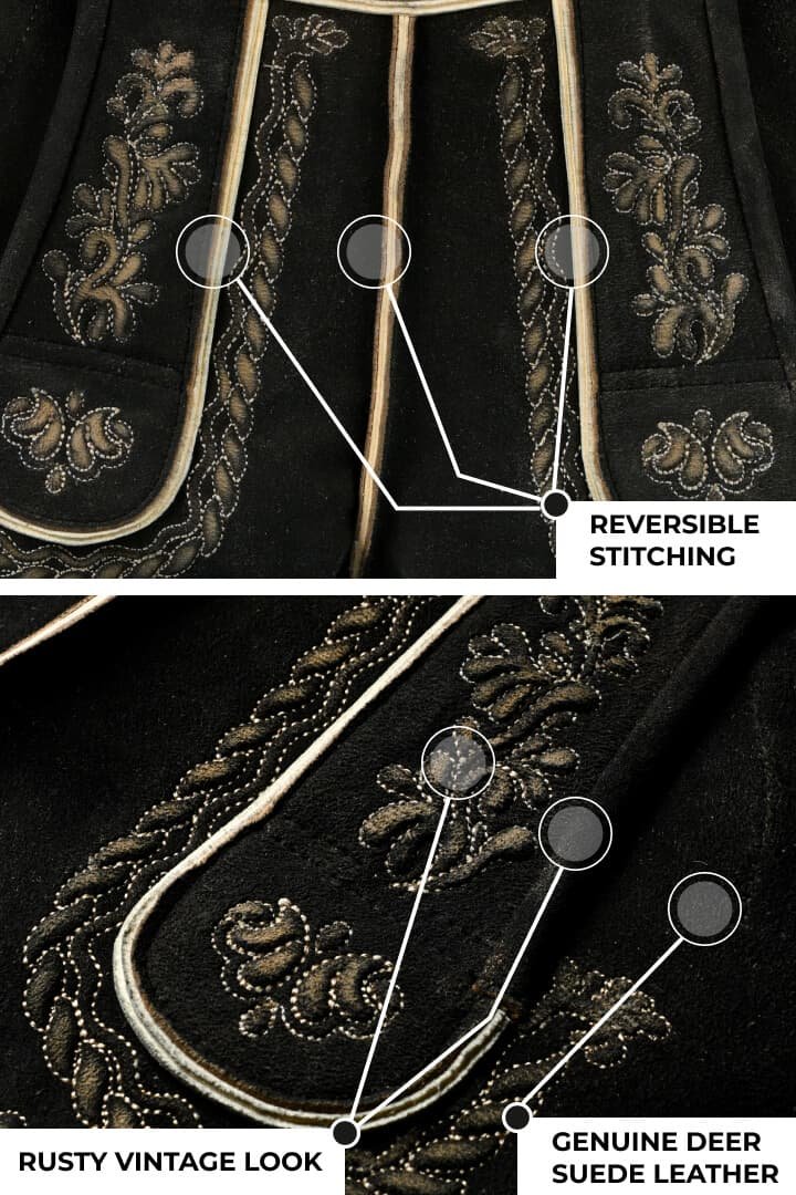 Carefully designed with intricate detailing and made from the finest quality genuine leather, our lederhosen for men showcases traditional & honest craftsmanship at its best. It’s not merely an “”Oktoberfest outfit”” but a representation of German heritage, making a bold statement of tradition and cultural pride. Meticulously handcrafted from the finest-grade Leather, our lederhosen outfit offers exceptional durability, comfort, and a luxurious double-shaded texture. If you’re a Bavarian enthusiast, our Oktoberfest Mens Outfits are the perfect choice for you.