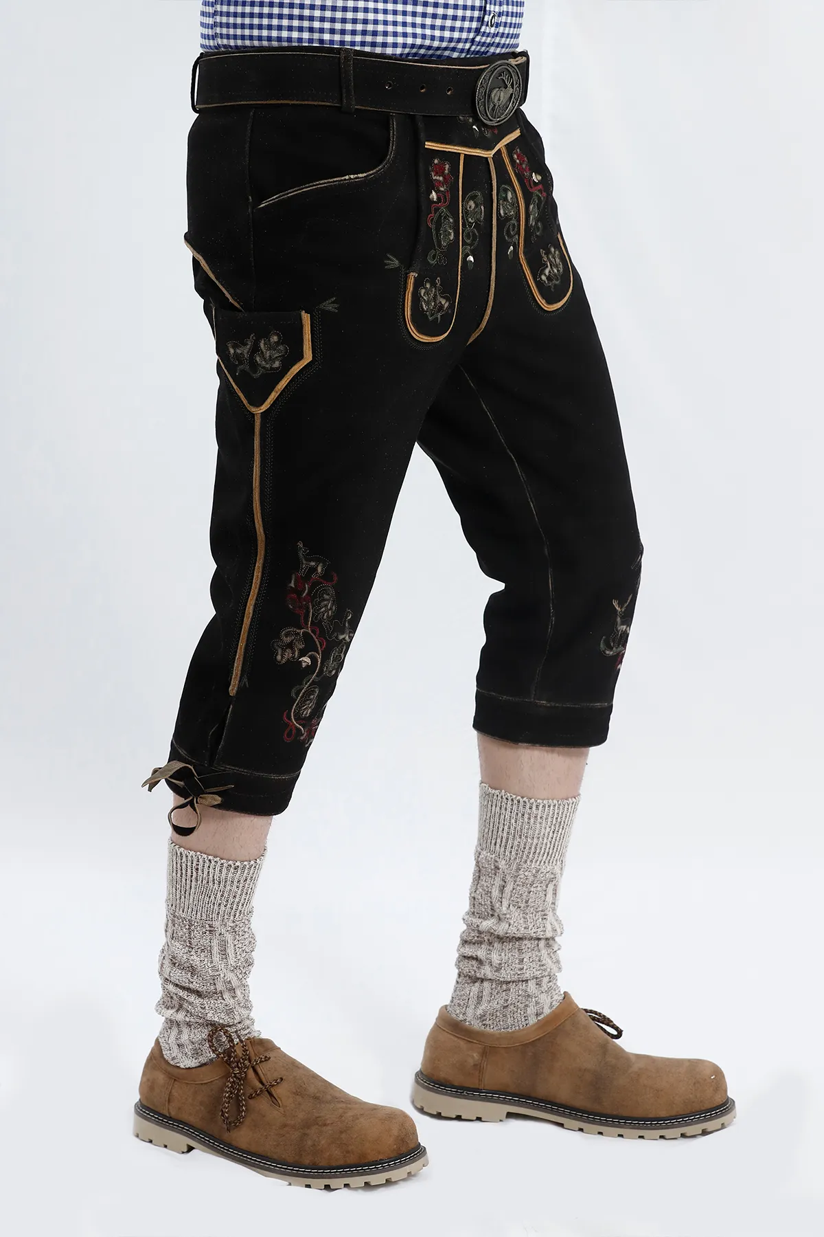 This Bavarian Bundhosen is below-knee length and has a traditional, timeless cut for a graceful look. The length is carefully designed to create a balanced silhouette, pairing perfectly with traditional Bavarian shoes or boots.