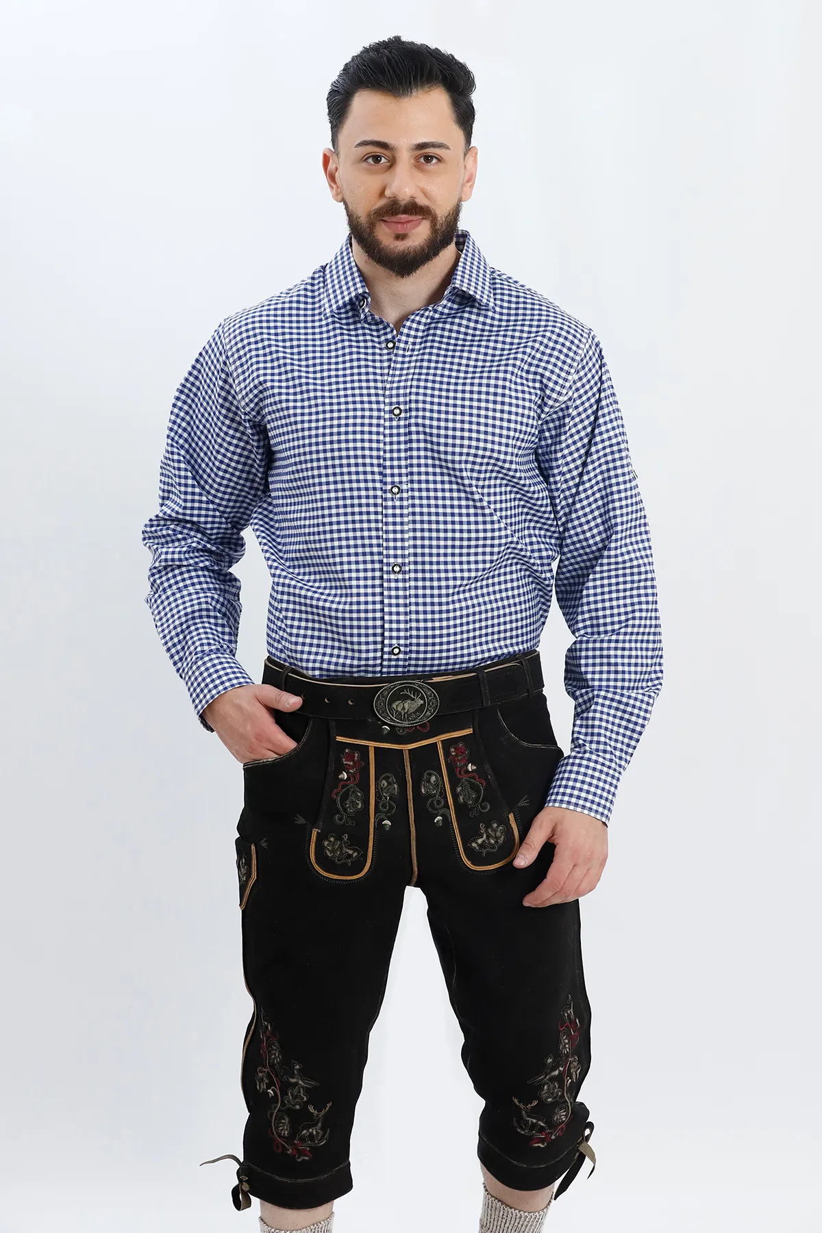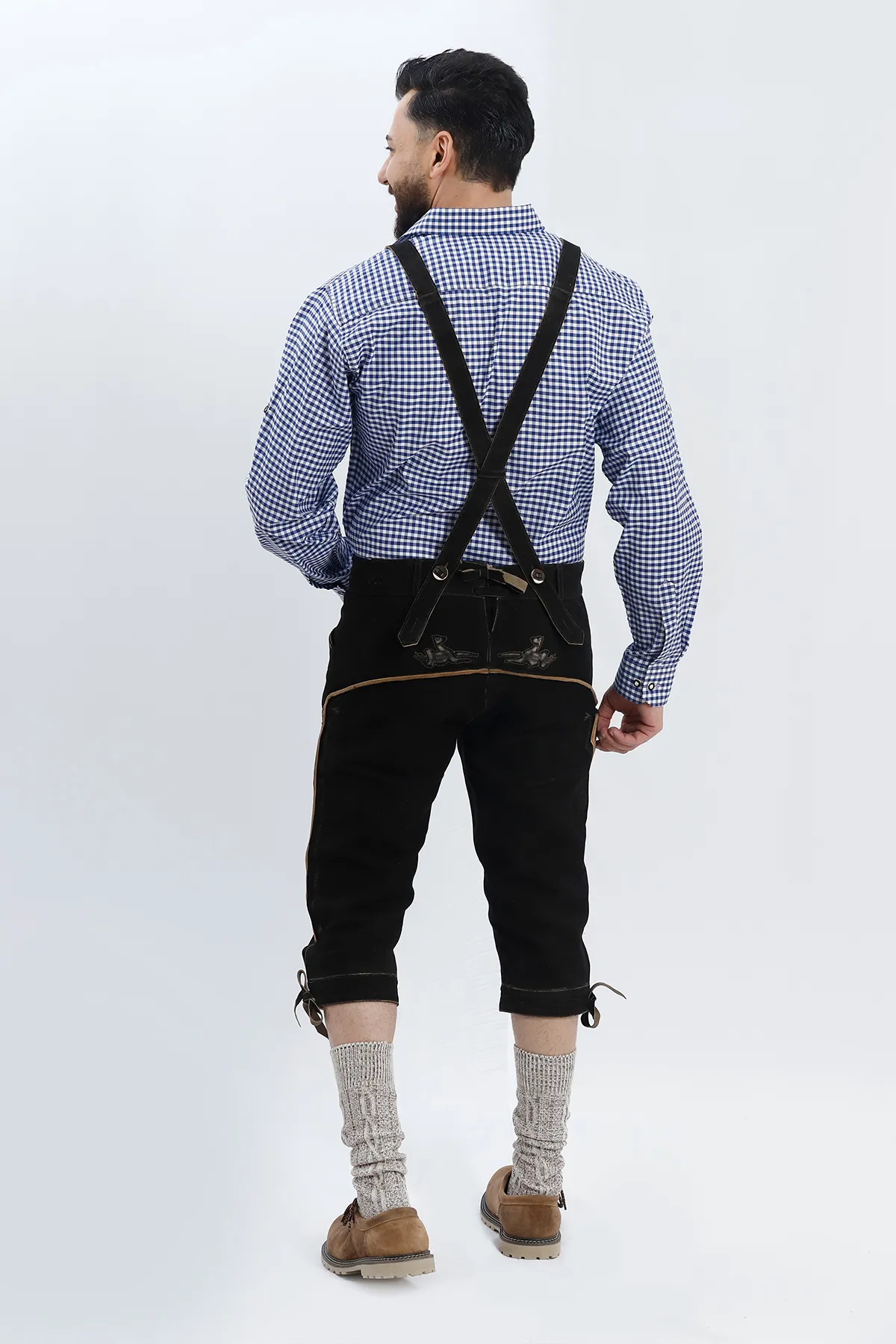 Pair the Bundhosen with our premium White Shirts or checkered shirts, knee-high socks, and brown Haferlschuhe to achieve a rustic look for various occasions. Consider wearing a knitted cardigan or a loden blazer for cooler weather. Finally, accessorize minimally with a Bavarian hat and braces to add a touch of personal flair.