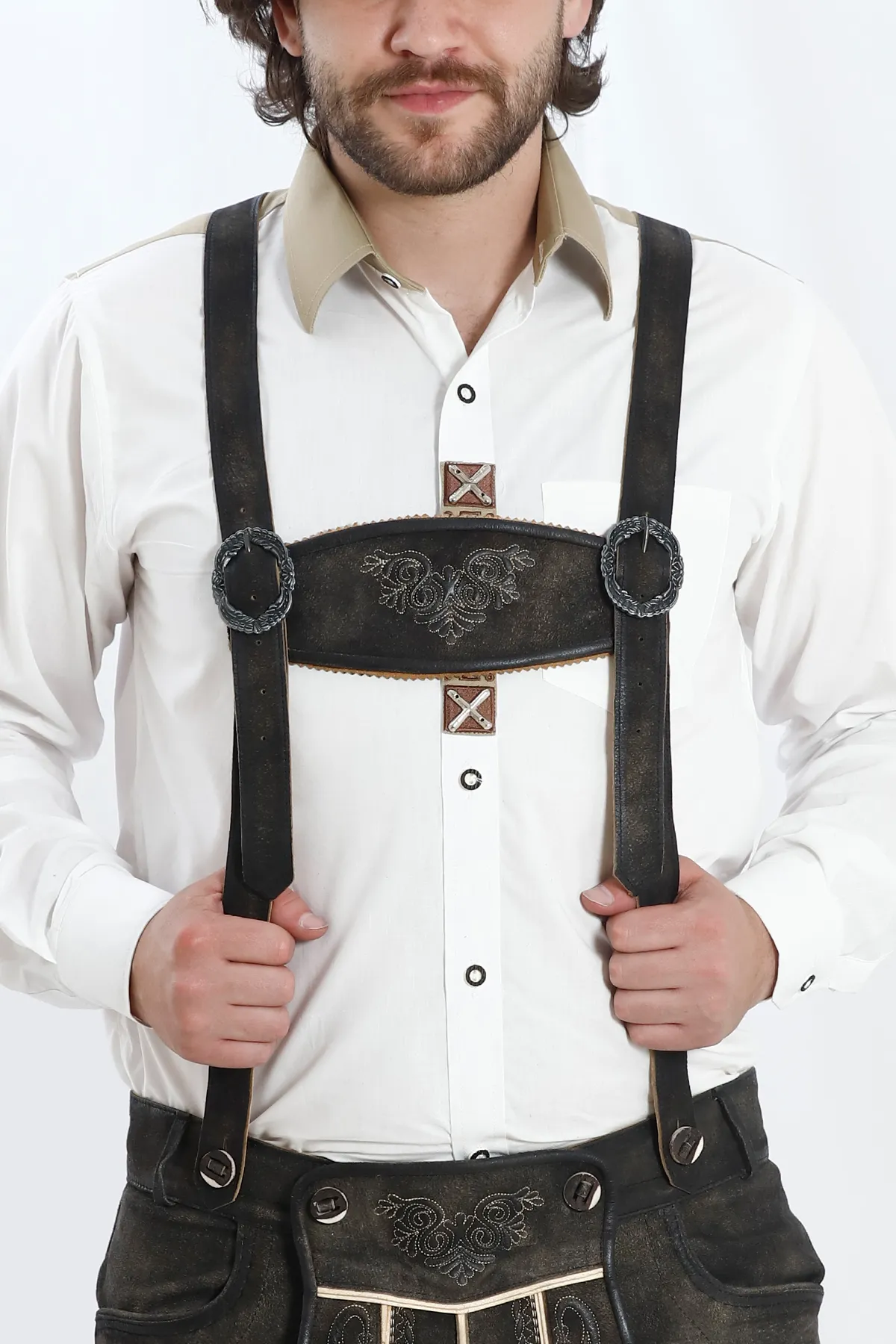 Carefully designed with intricate detailing and made from the finest quality genuine leather, our lederhosen for men showcases traditional & honest craftsmanship at its best. It’s not merely an “”Oktoberfest outfit”” but a representation of German heritage, making a bold statement of tradition and cultural pride. Meticulously handcrafted from the finest-grade Leather, our lederhosen outfit offers exceptional durability, comfort, and a luxurious double-shaded texture. If you’re a Bavarian enthusiast, our Oktoberfest Mens Outfits are the perfect choice for you.
