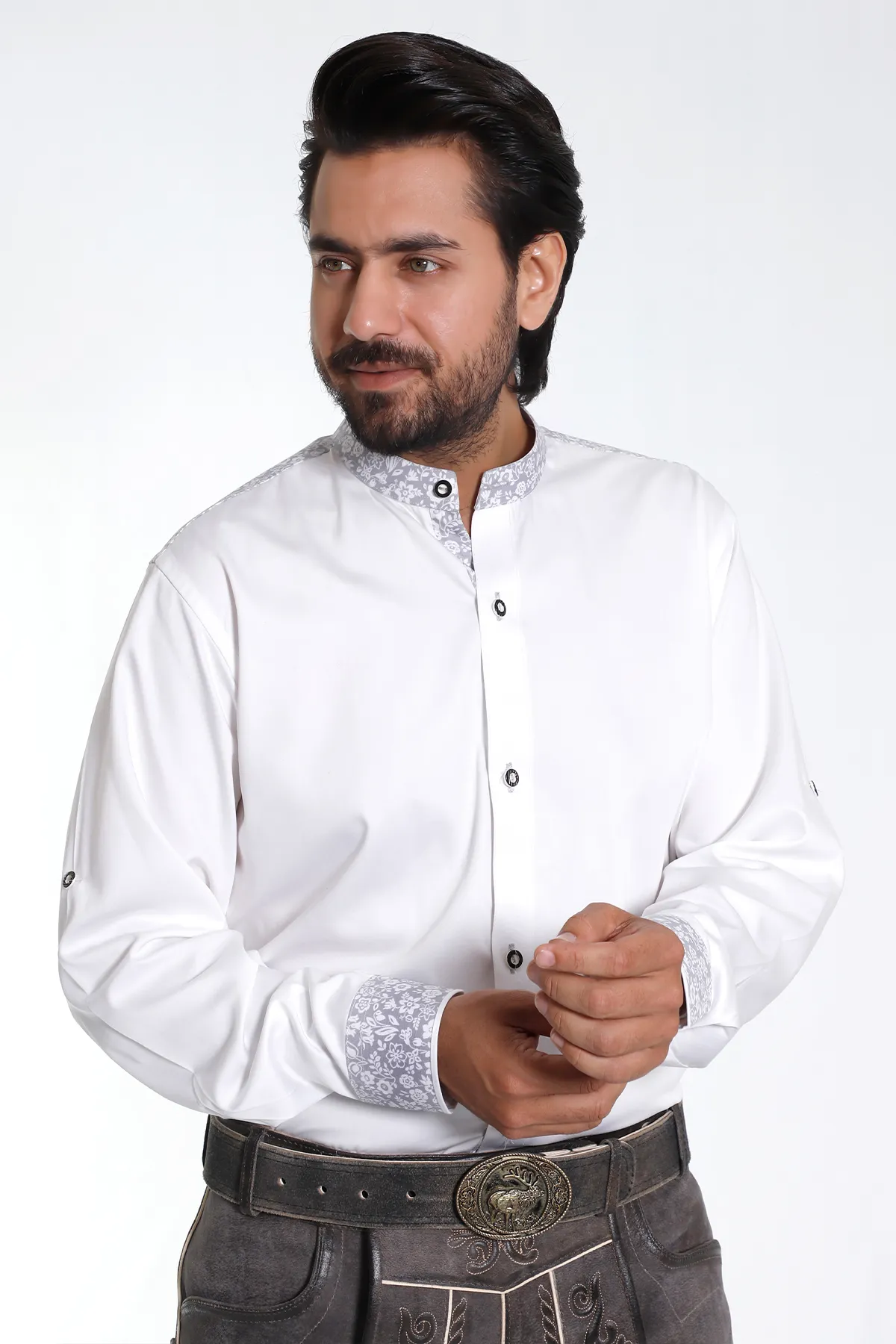 White Lederhosen Shirt with Floral Collar and Cuffs